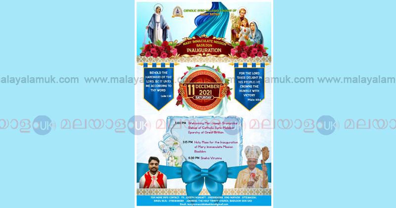 ബാസിൽഡൺ സീറോ മലബാർ സമൂഹത്തിന്റെ ചിരകാല ആഗ്രഹമായിരുന്ന സീറോ മലബാർ മിഷൻ എന്ന സ്വപ്നം സാക്ഷാൽകരിക്കപ്പെട്ടു. ഡിസംബർ 11 ശനിയാഴ്ച 3 മണിക്ക് നടന്ന കുർബാന മദ്ധ്യേ മാർ. ജോസഫ് സ്രാമ്പിക്കൽ മിഷൻ പ്രഖ്യാപനം നടത്തി. “മേരി ഇമാക്കുലേറ്റ് മിഷൻ” എന്ന നാമകരണം ചെയ്തു. മിഷൻ ഡയറക്ടർ ഫാദർ ജോസഫ് മുക്കാട്ട്, വിവിധ മിഷനുകളുടെ ഡയറക്ടർമാരായ വൈദികർ, മറ്റ് അത്മായ നേതാക്കൾ തുടങ്ങിയവരും മിഷൻ അംഗങ്ങൾക്കൊപ്പം തിരുകർമ്മങ്ങളിലും അനുബന്ധ ചടങ്ങുകളിലും സംബന്ധിച്ചു.
