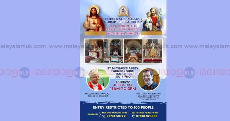 ലണ്ടൻ . വിശുദ്ധ യൗസേപ്പിതാവിനെ സാർവത്രിക സഭയുടെ പേട്രൺ ആയി പ്രഖ്യാപിച്ചതിന്റെ നൂറ്റി അൻപതാം വാർഷികത്തോടനുബന്ധിച്ച് പരിശുദ്ധ ഫ്രാൻസിസ് മാർപാപ്പ പ്രഖ്യാപിച്ച സെന്റ് ജോസഫ് ഇയറിന്റെ ഗ്രേറ്റ് ബ്രിട്ടൻ സീറോ മലബാർ രൂപതാ തല സമാപനത്തോടനുബന്ധിച്ചു ബ്രിട്ടനിലെ വിശുദ്ധ യൗസേഫ് പിതാവിന്റെ നാമധേയത്തിലുള്ള ചരിത്ര പ്രസിദ്ധമായ ഫാൻബൊറോ ആബിയിലേക്കു തീർഥാടനം സംഘടി പ്പിച്ചിരിക്കുന്നു.