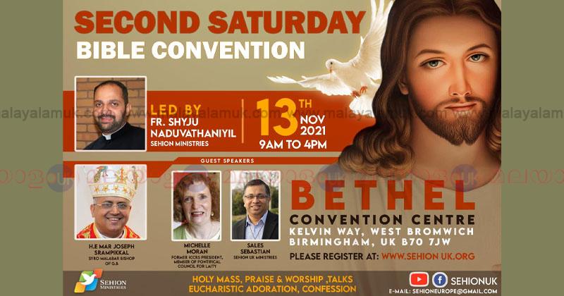 ബർമിംങ്ഹാം: പരിശുദ്ധാത്മ കൃപയാൽ ആത്മാഭിഷേകത്തിന്റെ പൂർണ്ണതയിൽ അനേകരിൽ വിടുതലും രോഗശാന്തിയും ജീവിത നവീകരണവും സാദ്ധ്യമാക്കിക്കൊണ്ടിരിക്കുന്ന സെഹിയോൻ യുകെയുടെ പ്രതിമാസ രണ്ടാം ശനിയാഴ്ച്ച ബൈബിൾ കൺവെൻഷൻ 13 ന് ബർമിങ്ഹാം ബഥേൽ സെന്റെറിൽ നടക്കും. സെഹിയോൻ യുകെ യുടെ ആത്മീയ നേതൃത്വവും പ്രമുഖ ആത്മീയ രോഗശാന്തി ശുശ്രൂഷകനുമായ റവ .ഫാ.ഷൈജു നടുവത്താനിയിൽ കൺവെൻഷൻ നയിക്കും.