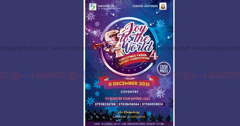 കൊവെൻട്രി: യു കെയിലെ വിവിധ ഗായക സംഘങ്ങളെ അണിനിരത്തിക്കൊണ്ട് ഗർഷോം ടി വിയും ലണ്ടൻ അസാഫിയൻസും ചേർന്ന് കഴിഞ്ഞ മൂന്നു വർഷങ്ങളായി നടത്തിവരുന്ന ക്രിസ്മസ് കരോൾ ഗാനമത്സരത്തിന്റെ നാലാം പതിപ്പ് 2021 ഡിസംബർ 11 ശനിയാഴ്ച കവൻട്രിയിൽ വച്ചു നടത്തപ്പെടുന്നു. കവെൻട്രി വില്ലൻ ഹാൾ സോഷ്യൽ ക്ലബ്ബിൽ ഉച്ചയ്ക്ക് 1 മണി മുതൽ സംഘടിപ്പിക്കുന്ന കരോൾ ഗാന മത്സരം വിവിധ ക്രിസ്തീയ സഭകളുടെയും ഗായകസംഘങ്ങളുടേയും ഒത്തുചേരലിന് വേദിയാകും. പരിപാടിയിൽ യുകെയിലെ വിവിധ ക്രിസ്തീയ സഭാസമൂഹങ്ങളുടെ ആത്മീയനേതാക്കൾ ആശംസകൾ അർപ്പിച്ചു സംസാരിക്കും. കരോൾ ഗാന മത്സരങ്ങൾക്ക് ശേഷം ലണ്ടൻ അസാഫിയൻസ് അവതരിപ്പിക്കുന്ന ലൈവ് ഗാനമേളയും നടക്കും.