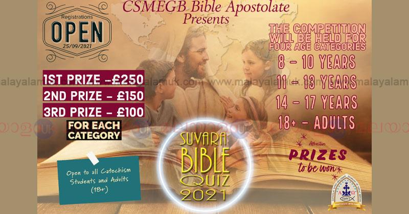 ഈ വർഷത്തെ സുവാറ ബൈബിൾ ക്വിസ് മത്സരങ്ങളുടെ രജിസ്ട്രേഷൻ ആരംഭിച്ചു. രണ്ടായിരത്തിൽ പരം കുട്ടികൾ മത്സരിച്ച യൂറോപ്പിലെത്തന്നെ ഏറ്റവും വലിയ ഓൺലൈൻ ബൈബിൾ ക്വിസ് മത്സരമാണ് ഗ്രേറ്റ് ബ്രിട്ടൻ രൂപത വിശ്വാസപരിശീലന ക്ലാസ്സുകളിലെ കുട്ടികൾക്കായി സുവാറ എന്ന പേരിൽ കഴിഞ്ഞ വർഷം സംഘടിപ്പിച്ചത് . കുട്ടികളുടെ പങ്കാളിത്തം കൊണ്ടും ദൈവജനത്തിന്റെ സഹകരണംകൊണ്ടും ഏറെ പ്രശംസപിടിച്ചുപറ്റിയ ഈ മത്സരം കുട്ടികൾ ബൈബിൾ പഠിക്കുക എന്ന ലഷ്യത്തിലുറച്ചുനിന്നുകൊണ്ട് ഈ വർഷവും നടത്തപെടുകയാണ്.