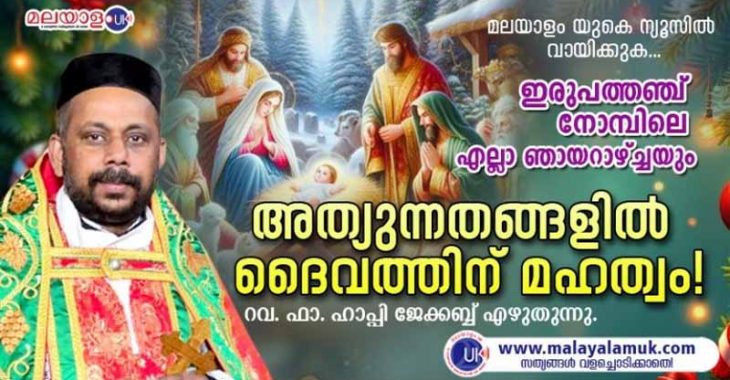 ദൈവിക വചനങ്ങളെ ഗബ്രിയേൽ മാലാഖ അറിയിച്ചപ്പോൾ മറിയത്തിന്റെ പ്രതിവചനങ്ങൾ ലളിതവും ലോക സങ്കല്പങ്ങളെ മാറ്റിമറിക്കുന്നതുമായിരുന്നു. “അവിടുത്തെ ഹിതം പോലെ എനിക്ക് ഭവിക്കട്ടെ “. ലൂക്കോസ് 1: 38 അവളുടെ സമർപ്പണം വിനയം, ദൈവഭക്തി ഇവയെല്ലാം ഹൃദയ ഒരുക്കത്തിന്റെ ഫലങ്ങളാണ്. നമ്മുടെ പ്രാർത്ഥന ശകലങ്ങളിൽ “ഒരുക്കപ്പെട്ട ആലയവും, ജീവനുള്ള ബലിപീഠവും ” എന്നൊക്കെ പരിശുദ്ധ കന്യകാമറിയമിനെ വിശേഷിപ്പിക്കാനുള്ള കാരണം ഇതാണ്. വിശ്വാസവും സമർപ്പണവും , അനുസരണവും ഒത്തുചേരുന്നിടത്ത് ക്രിസ്തു ജാതം ചെയ്യുമെന്ന് ഈ പാഠം നൽകുന്നു. ഇവയെല്ലാം നമ്മെ ഓർമിപ്പിക്കുന്നത് ക്രിസ്തുമസ് ഒരു ചടങ്ങായിട്ടല്ല, ഒരുക്കപ്പെട്ട ഹൃദയങ്ങളിൽ വെളിപ്പെടുന്ന ഒരു അത്ഭുതമാണ്. ഇന്നത്തെ നമ്മുടേതായ അർത്ഥങ്ങൾ നൽകുന്ന ആചരണങ്ങളിലും ശബ്ദ സാന്ദ്രമായ കൂട്ടങ്ങളിലും, വിഭവങ്ങൾ നിറഞ്ഞ തീൻ മേശകളും അല്ല ഹൃദയത്തിൻറെ ഒരുക്കമാണ് ക്രിസ്തുമസ് . ഒരു നിമിഷം കേൾക്കുക, അനുസരിക്കുക, ഹൃദയങ്ങളെ ഒരുക്കുക, ക്രിസ്തുവിന് നമ്മുടെ ഉള്ളിൽ ഇടം നൽകുക. അവൻറെ ജനനത്തിങ്കൽ പ്രകമ്പനം കൊണ്ട “അത്യുന്നതങ്ങളിൽ ദൈവത്തിന് മഹത്വം, ഭൂമിയിൽ ദൈവപ്രസാദമുള്ള മനുഷ്യർക്ക് സമാധാനം” – നമുക്കും സാധ്യമാക്കാം.