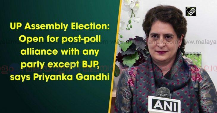 ഉത്തർപ്രദേശിൽ തെരഞ്ഞെടുപ്പ് പ്രചാരണം ചൂടുപിടിക്കുന്നതിനിടെ കോൺഗ്രസിെൻറ സഖ്യസാധ്യതകൾ സൂചിപ്പിച്ച് എഐസിസി ജനറൽ സെക്രട്ടറി പ്രിയങ്ക ഗാന്ധി. ബിജെപിയല്ലാത്ത ആരുമായും കോൺഗ്രസ് തെരഞ്ഞെടുപ്പിനുശേഷം സഖ്യത്തിനു തയാറാണെന്ന് പ്രിയങ്ക വ്യക്തമാക്കി. എന്നാൽ, ബിജെപിക്കു സമാനമായ രാഷ്ട്രീയമാണ് സമാജ്വാദി പാർട്ടിക്കുമുള്ളതെന്നും അവർ ആരോപിച്ചു.