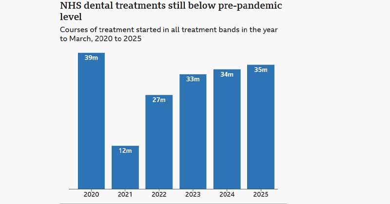 സർക്കാർ എൻ എച്ച് എസ് ദന്തചികിത്സാ സംവിധാനത്തിൽ മാറ്റങ്ങൾ കൊണ്ടുവരേണ്ടതുണ്ടെന്ന് ആരോഗ്യ വിദഗ്ധർ മുന്നറിയിപ്പ് നൽകി. നിലവിലെ കരാർ സംവിധാനം പരിഷ്കരിക്കാതെ പോയാൽ കൂടുതൽ ഡെന്റിസ്റ്റുകൾ എൻ എച്ച് എസ് സേവനം ഉപേക്ഷിച്ച് സ്വകാര്യ മേഖലയിലേക്ക് മാറാൻ സാധ്യതയുണ്ടെന്നും അവർ പറയുന്നു. എൻ എച്ച് എസ് സേവനം ശക്തിപ്പെടുത്തി രോഗികൾക്ക് കുറഞ്ഞ ചെലവിൽ ദന്തചികിത്സ ലഭ്യമാക്കേണ്ടതുണ്ടെന്നാണ് വിദഗ്ധരുടെ നിർദേശം.