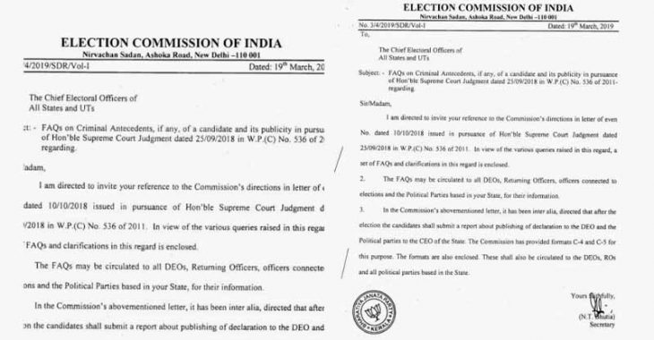 2019-ലെ സ്ഥാനാർത്ഥികളുടെ ക്രിമിനൽ പശ്ചാത്തലവുമായി ബന്ധപ്പെട്ട മാർഗ്ഗനിർദ്ദേശങ്ങളിൽ വ്യക്തത തേടി ബിജെപി സംസ്ഥാന ഘടകം സമർപ്പിച്ച അപേക്ഷയ്ക്കൊപ്പമുള്ള കത്തിലാണ് സീൽ ഉണ്ടായിരുന്നത്. ഈ രേഖയാണ് അശ്രദ്ധ മൂലം മറ്റു പാർട്ടികൾക്കും അയച്ചതെന്ന് കമ്മീഷൻ വ്യക്തമാക്കി.