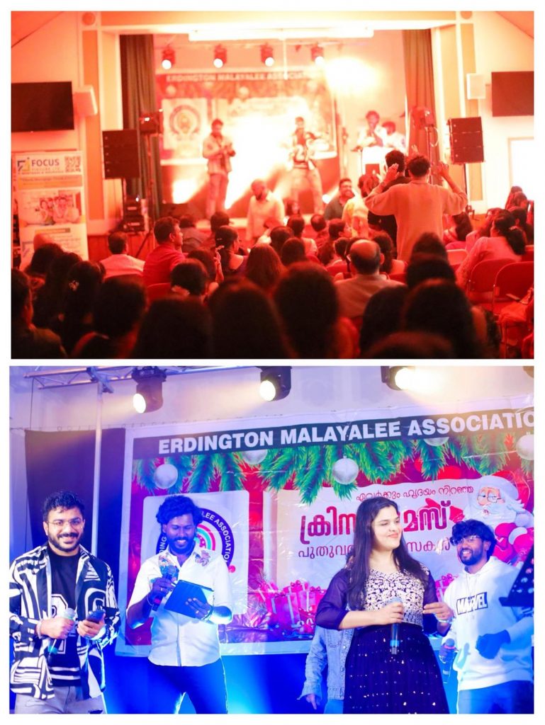 സട്ടൺ കോൾഡ്ഫീൽഡ്: ഏർഡിങ്ട്ടൻ മലയാളി അസോസിയേഷന്റെ (EMA) ആഭിമുഖ്യത്തിൽ സംഘടിപ്പിച്ച ക്രിസ്മസ് പുതുവത്സര ആഘോഷങ്ങൾ സട്ടൺ കോൾഡ്ഫീൽഡ് സെന്റ് ചാർഡ്സ് ഹാളിൽ വച്ച് അതിഗംഭീരമായി നടന്നു. ജനുവരി 17 ശനിയാഴ്ച നടന്ന ചടങ്ങിൽ പ്രവാസി മലയാളി സമൂഹത്തിന്റെ വൻ പങ്കാളിത്തമാണ് ദൃശ്യമായത്. പരമ്പരാഗത ശൈലിയിൽ നിലവിളക്ക് കൊളുത്തിക്കൊണ്ട് ആഘോഷ പരിപാടികൾക്ക് തുടക്കമായി. അസോസിയേഷൻ പ്രസിഡന്റ് ജോർജ് മാത്യു അധ്യക്ഷത വഹിച്ച ചടങ്ങിൽ ഏവർക്കും ക്രിസ്മസ് പുതുവത്സര സന്ദേശങ്ങൾ കൈമാറി. സെക്രട്ടറി ഡിജോ ജോൺ ചടങ്ങിന് സ്വാഗതം ആശംസിക്കുകയും ട്രഷറർ റോണി ഈസി നന്ദി രേഖപ്പെടുത്തുകയും ചെയ്തു.