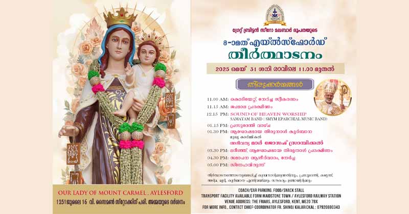 മിഡില്സ്ബ്രോ രൂപതയിലുള്ള സീറോമലബാര് കുര്ബാനകേന്ദ്രങ്ങളുടെ ആഭിമുഖ്യത്തില് നടത്തുന്ന കുടുംബസംഗമം ‘ഫമിലിയ’ ഈ വര്ഷം മിഡില്സ്ബ്രോയില്വച്ച് നടത്തപ്പെടുന്നു. സെപ്റ്റംബര് 23 ശനിയാഴ്ച മിഡില്സ്ബ്രോ ട്രിനിറ്റി കാത്തലിക് കോളേജില് നടക്കുന്ന മൂന്നാമത്തെ കുടുംബ സംഗമത്തിന്റെ ഉദ്ഘാടനം രൂപതാ വികാരിജനറാള് മോന്സിഞ്ഞോര് ജെറാള്ഡ് റോബിന്സണ് നിര്വഹിക്കും. തുടര്ന്ന് വിശുദ്ധ കുര്ബാന, കുട്ടികള്ക്കും മുതിര്ന്നവര്ക്കുമുള്ള വിനോദ പരിപാടികള്, പൊതുസമ്മേളനം, വിവിധ കലാപരിപാടികള് എന്നിവ നടക്കുന്നതായിരിക്കും.