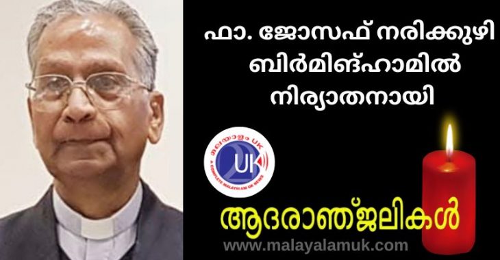 ബിർമിങ്ഹാം: യുകെയിലെ ആദ്യകാല മലയാളി വൈദികരിൽ ഒരാളായ ഫാ. ജോസഫ് നരിക്കുഴി (86) നിര്യാതനായി. വാർദ്ധക്യ സഹജമായ അസുഖങ്ങളെ തുടർന്ന് ഇന്ന് രാവിലെ (21/02/2026) ബിർമിങ്ഹാമിലെ വൈദിക മന്ദിരത്തിൽ വച്ചായിരുന്നു അന്ത്യം. ബ്രിട്ടണിൽ സീറോമലബാർ രൂപത സ്ഥാപിക്കുന്നതിന് മുമ്പുള്ള കാലഘട്ടത്തിൽ, പ്രത്യേകിച്ച് 2000 – ത്തിൻ്റെ ആദ്യ പാദത്തിൽ, യുകെയുടെ വിവിധ ഭാഗങ്ങളിൽ മലയാളത്തിൽ വി. കുർബാന അർപ്പിച്ചിരുന്ന വൈദികരിൽ ഒരാളായിരുന്നു അദ്ദേഹം. പ്രവാസി മലയാളികളുടെ ആത്മീയ ജീവിതത്തിൽ നിർണായക സാന്നിധ്യമായിരുന്നു നരിക്കുഴിയച്ചൻ.