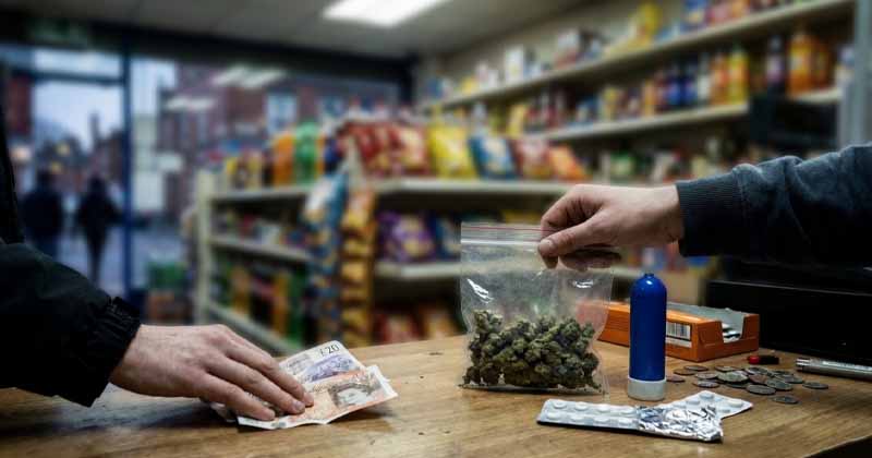 ബ്രിട്ടനിലെ ഹൈസ്റ്റ്രീറ്റ് മിനി മാർട്ടുകളിൽ കൊക്കെയ്ൻ, കഞ്ചാവ്, ലാഫിംഗ് ഗ്യാസ്, പ്രിസ്ക്രിപ്ഷൻ ഗുളികകൾ എന്നിവ പരസ്യമായി വിൽക്കുന്നതായി ബിബിസി നടത്തിയ രഹസ്യ അന്വേഷണത്തിൽ വെളിപ്പെട്ടു. വെസ്റ്റ് മിഡ്‌ലാൻഡ്സിലെ നാല് സമീപ പട്ടണങ്ങളിലായി നടത്തിയ രഹസ്യ ക്യാമറ ചിത്രീകരണത്തിൽ, കടകളിൽ എത്തിയ അന്വേഷകർക്ക് ഈ ലഹരിവസ്തുക്കൾ വളരെ എളുപ്പത്തിൽ ലഭിച്ചതാണ് സംഭവം പുറത്തുവരാൻ സഹായിച്ചത് . ഇത് വളരെ ഞെട്ടിക്കുന്നതാണ് എന്നാണ് നിയമസംരക്ഷണ വിഭാഗത്തിലെ ഒരു ഉദ്യോഗസ്ഥൻ വിശേഷിപ്പിച്ചത്. അതേസമയം സമീപ നഗരങ്ങളിലെ സാധാരണ വ്യാപാരികൾ ഗുണ്ടാസംഘങ്ങളുടെ ഭീഷണിയും കത്തി-തോക്ക് ആക്രമണങ്ങളും നേരിടുന്നതായി പരാതിപ്പെട്ടു.