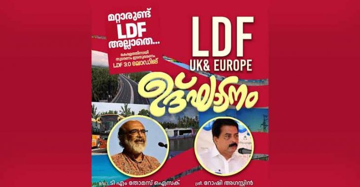 ആസന്നമായ കേരള നിയമസഭാ തിരഞ്ഞെടുപ്പിൽ ഇടതുപക്ഷ ജനാധിപത്യ മുന്നണിയുടെ വിജയത്തുടർച്ച ഉറപ്പാക്കുന്നതിനായി രൂപീകരിച്ച ‘എൽ.ഡി.എഫ് യുകെ & യൂറോപ്പിന്റെ പ്രവർത്തനോദ്ഘാനം പ്രൗഢഗംഭീരമായ ചടങ്ങിൽ നടന്നു. ശനിയാഴ്ച നടന്ന ഓൺലൈൻ സമ്മേളനത്തിൽ യൂറോപ്പിലെ വിവിധ രാജ്യങ്ങളിൽ നിന്നുള്ള നൂറുകണക്കിന് ഇടതുപക്ഷ അനുഭാവികൾ പങ്കെടുത്തു.