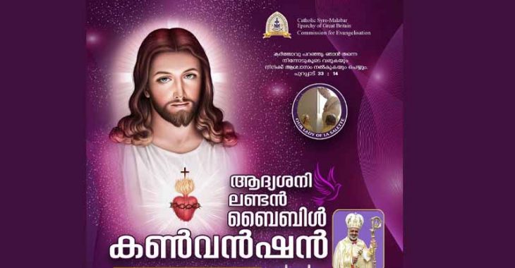 റയിൻഹാം: ഗ്രേറ്റ് ബ്രിട്ടൻ സീറോമലബാർ എപ്പാർക്കി ഇവാഞ്ചലൈസേഷൻ കമ്മീഷന്റെ നേതൃത്വത്തിൽ, ലണ്ടനിൽ വെച്ച് മാസം തോറും സംഘടിപ്പിക്കുന്ന ‘ആദ്യ ശനിയാഴ്ച്ച ബൈബിൾ കൺവെൻഷൻ’ ജനുവരി 3 ന് ശനിയാഴ്ച്ച ഉണ്ടായിരിക്കുന്നതാണ്. ലണ്ടനിൽ റയിൻഹാം ഔർ ലേഡി ഓഫ് ലാസലേറ്റ് കത്തോലിക്കാ ദേവാലയത്തിലാണ് കൺവെൻഷൻ ക്രമീകരിച്ചിരിക്കുന്നത്.