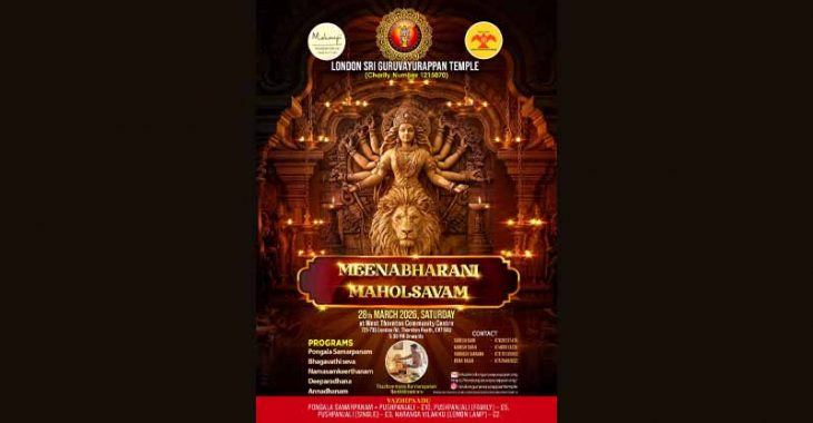 ലണ്ടനിൽ ഒരു ഗുരുവായൂരപ്പ ക്ഷേത്രം എന്ന സാക്ഷാത്കാരത്തിമായി പ്രവർത്തിച്ച് കൊണ്ടിരിക്കുന്ന , മോഹൻജി ഫൗണ്ടേഷനും, ലണ്ടൻ ശ്രീ ഗുരുവായൂരപ്പ സേവാ സംഘവും സംയുക്തമായി മീനഭരണി ആഘോഷം സംഘടിപ്പിക്കുന്നു. 2026 മാർച്ച് 28 ശനിയാഴ്ച വൈകുന്നേരം 5:30 മുതൽ തോണ്ടൻ ഹീത്തിലുള്ള വെസ്റ്റ് തോണ്ടൻ കമ്മ്യൂണിറ്റി സെന്ററിൽ വച്ചാണ് ചടങ്ങുകൾ സഘടിപ്പിച്ചിരിക്കുന്നത്. അന്നേ ദിവസം പൊങ്കാല സമർപ്പണം, ഭഗവതി സേവ,നാമസങ്കീർത്തനം,താലപ്പൊലി, ദീപാരാധന, അന്നദാനം എന്നിവ ഉണ്ടായിരിക്കുന്നതാണ്.പ്രത്യേക വഴിപാടുകളായ പൊങ്കാല സമർപ്പണം,പുഷ്പാഞ്ജലി, നാരങ്ങ വിളക്ക് എന്നിവയും ഭക്തജനങ്ങൾക്ക് സമർപ്പിക്കാവുന്നതാണ് ചടങ്ങുകൾക്ക് താഴൂർ മന ഹരിനാരായണൻ നമ്പിടിശ്വര്വർ കാർമികത്വം വഹിക്കും.