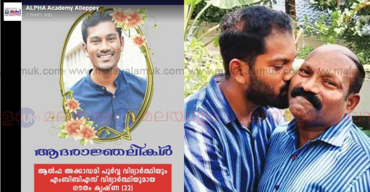 കോളേജ് കൗൺസിൽ ചെയർമാനായ ഗൗതം കൃഷ്ണ വോളിബോൾ താരവുമായിരുന്നു. യുവഡോക്ടറുടെ വേർപാട് ഇനിയും ഉൾക്കൊള്ളാനായിട്ടില്ല അമ്പലപ്പുഴയിലെ ഈ ഗ്രാമത്തിന്. അപകടമുണ്ടായ ദിവസംമുതൽ പ്രതീക്ഷയും പ്രാർഥനയുമായി നാട്ടുകാരും കുടുംബത്തിനൊപ്പമുണ്ടായിരുന്നു. കോളേജിൽ പൊതുദർശനത്തിനുശേഷം ബുധനാഴ്ച വൈകീട്ട് ആറോടെയാണ് മൃതദേഹവുമായി ആലപ്പുഴയിലേക്കു പുറപ്പെട്ടത്. രാത്രി വൈകി വീട്ടുവളപ്പിൽ സംസ്കരിച്ചു.