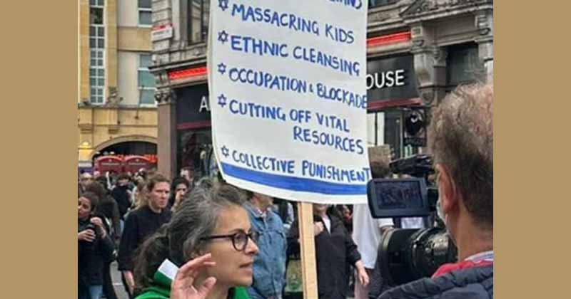 ലണ്ടൻ ട്രഫാൽഗർ സ്ക്വയറിലെ 2023 നവംബർ ഗാസാ പ്രതിഷേധത്തിനിടെ ഒരു പ്ലക്കാർഡ് പിടിച്ചതിന് അറസ്റ്റിലായ ഐഷ ജംഗിന് മെട്രോ പൊലീസ് £7,500 നൽകാൻ സമ്മതിച്ചു. “നിരപരാധികളെ ബോംബാക്രമണം ചെയ്യൽ, കുട്ടികളെ കൊല്ലൽ, ഉപരോധം, അടിസ്ഥാന സൗകര്യങ്ങൾ വിച്ഛേദിക്കൽ” എന്നീ ആരോപണങ്ങളുള്ള സന്ദേശമാണ് അവൾ പിടിച്ചിരുന്നത്. പോലീസുകാർ അത് അപമാനകരമാണെന്ന് പറഞ്ഞ് അവരെ തടഞ്ഞു നിർത്തുകയും പിന്നീട് അറസ്റ്റ് ചെയ്യുകയും ചെയ്തു.