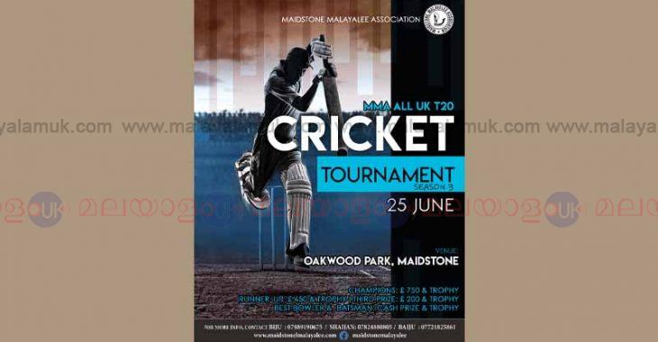 യു കെ യിലുടനീളമുള്ള ക്രിക്കറ്റ് ടീമുകളും ക്രിക്കറ്റ് പ്രേമികളായ അനേകം മലയാളികളും ആകാംക്ഷയോടെ കാത്തിരുന്ന എം എം എ ക്രിക്കറ്റ് ടൂര്ണമെന്റ് സീസണ് 3 ജൂണ് 25 ന് മെയ്ഡ്സ്റ്റോണില് നടക്കും. അതീവ സുന്ദരവും വിശാലവുമായ ഓക്ക് വുഡ് മൈതാനവും സെന്റ് അഗസ്റ്റിന്സ് മൈതാനവും ഈ ആവേശ പോരാട്ടത്തിന് വേദിയാകും.