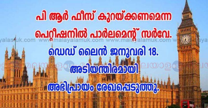 പി ആർ ഫീസ് കുറയ്ക്കണമെന്ന പെറ്റീഷനിൽ പാർലമെൻ്റ് സർവേ. ഡെഡ് ലൈൻ ജനുവരി 18. അടിയന്തിരമായി അഭിപ്രായം രേഖപ്പെടുത്തൂ.