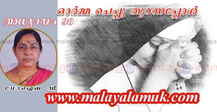 അടുത്ത മുറികളിലും ഡോർ മെട്രികളിലും ആർക്കൊക്കെയോ ശ്വാസം മുട്ടൽ, ചുമ, ഛർദ്ധി എന്നിവയൊക്കെയുണ്ടെന്ന് സിസ്റ്റർക്ക് മനസ്സിലായി. അന്തരീക്ഷത്തിൽ ക്ലോറിൻ ഗന്ധം പരന്നപ്പോൾ സിറ്റർ അപകടം മണത്തു. സിസ്റ്റർ വേഗം അവസരത്തിനൊത്തുയർന്നു ഉണർന്ന് പ്രവർത്തിച്ചു. അച്ചന്മാരെ വിവരമറിയിച്ച് ആംബുലൻസുകൾ വരുത്തി. ഓരോ ഡോർ മെട്രിയിലും ചെന്ന് ഹോസ്റ്റലിലെ അന്തേവാസികളെ താങ്ങി ആംബുലൻസിൽ എത്തിച്ചു. ഒറ്റവസ്ത്രം മാത്രം ധരിച്ചിരുന്നവർക്ക് ഒരു പുതപ്പു കൂടി തപ്പിയെടുത്ത് പുതപ്പിക്കാൻ സിസ്റ്റർ പ്രത്യേകം ശ്രദ്ധിച്ചു. എല്ലാ ഡോർ മെട്രിയിലും ചുറ്റി നടന്ന് അവസാനത്തെയാളെയും സിസ്റ്റർ ആംബുലൻസിൽ എത്തിച്ചു. അധോമുഖാദേശ സ്വഭാവമുള്ള ക്ലോറിൻ വാതകം ആദ്യം പരക്കുന്നത് അന്തരീക്ഷത്തിൽ താഴ്ന്ന തലത്തിലാണ്. താഴെ ക്ലോറിന്റെ ആധിക്യം കൂടിയപ്പോൾ പരിക്ഷീണയായ സിസ്റ്റർ കുഴഞ്ഞ് വീണ് തത്ക്ഷണം മരിച്ചു. ആ അപകടത്തിൽ സിസ്റ്റർക്കല്ലാതെ മറ്റാർക്കും മരണത്തിന് കീഴടങ്ങേണ്ടി വന്നില്ല. ടെസ്സി പറഞ്ഞു നിർത്തിയപ്പോൾ എല്ലാവരെയും രക്ഷിച്ച ശേഷം കർത്താവിന്റെ അരികിലേയ്ക്ക് പോയ കർത്താവിന്റെ മണവാട്ടിയുടെ ഫോട്ടോയിലേയ്ക്ക് ആദരപൂർവ്വം ഞാനൊന്നു കൂടി നോക്കി. ഇന്നോർമ്മയിൽ തപ്പുമ്പോൾ പേരോർമ്മ വരുന്നില്ലെങ്കിലും ചിന്തിച്ചു. ആ ആത്മത്യാഗത്തിന് എന്തിനാണൊരു പേര് ?