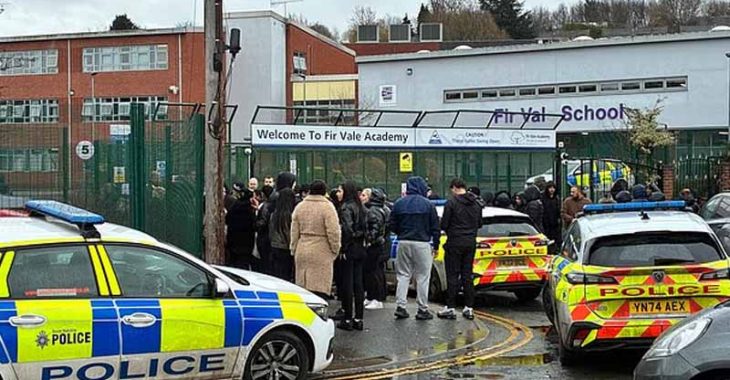 “ഫെബ്രുവരി 26-ന് ഉച്ചയോടെ ഷെഫീൽഡിലെ ഫിർ വേൽ സെക്കൻഡറി സ്കൂളിൽ ഉണ്ടായ സംഘർഷവുമായി ബന്ധപ്പെട്ട് വിവരം ലഭിച്ചതായി ഉച്ചയ്ക്ക് ശേഷം പുറത്തിറക്കിയ പ്രസ്താവനയിൽ സൗത്ത് യോർക്ക്ഷയർ പൊലീസ് അറിയിച്ചു. കൂടുതൽ വിവരങ്ങൾ ഔദ്യോഗിക വെബ്സൈറ്റിലൂടെയോ ഔദ്യോഗിക സാമൂഹ്യമാധ്യമ പേജുകളിലൂടെയോ അറിയിക്കുമെന്ന് പോലീസ് പറഞ്ഞു. സംഭവത്തെ കുറിച്ച് എന്തെകിലും വിവരമുള്ളവർ 101 എന്ന നമ്പറിൽ ബന്ധപ്പെടണമെന്ന് പോലീസ് അഭ്യർത്ഥിച്ചിട്ടുണ്ട് . 1998-ൽ ആരംഭിച്ച ഫിർ വേൽ സ്കൂൾ 2004-ൽ ഔദ്യോഗികമായി ഉൽഘാടനം ചെയ്തത് എലിസബത്ത് രാജ്ഞിയും പ്രിൻസ് ഫിലിപ്പും ചേർന്നായിരുന്നു. നിലവിൽ സ്ഥാപനത്തിൽ ഏകദേശം ആയിരത്തോളം വിദ്യാർത്ഥികൾ ആണ് പഠിക്കുന്നത്.