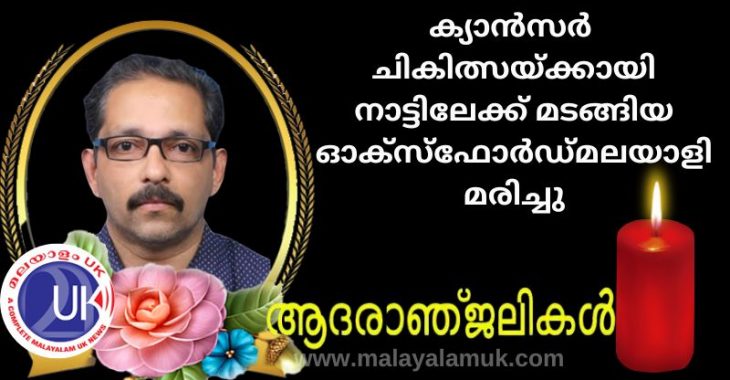 ഓക്സ്ഫോർഡ്: ക്യാൻസർ ചികിത്സയ്ക്കായി നാട്ടിലേക്ക് മടങ്ങിയ യുകെ മലയാളി വിടവാങ്ങി. ഓക്സ്ഫോർഡിൽ താമസിച്ചിരുന്ന പ്രദീപ് കുമാർ (55 ) ആണ് മരിച്ചത് . പത്തനംതിട്ട ആറാട്ടുപുഴ ആണ് പ്രദീപ് കുമാറിന്റെ സ്വദേശം.