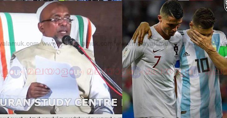 ക്രിസ്റ്റ്യാനോ റൊണാൾഡോക്കും ലയണൽ മെസിക്കും എതിരെ ഗുരുത ആരോപണവുമായി മുസ്ലിം പണ്ഡിതൻ രംഗത്ത് എത്തി. റൊണാൾഡോക്ക് അടിസ്ഥാന വിദ്യാഭ്യാസം ഇല്ലെന്നും അതിനാൽ തന്നെ അയാൾക്ക് വിവരം ഇല്ലെന്നും പണ്ഡിതൻ പറഞ്ഞു. മെസി അനേകം മദ്യ ബ്രാന്റുകളുടെ അംബാസിറ്റർ ആണെന്നും മെസി മദ്യപിച്ച് ലക്കുകെട്ട് നടക്കുന്ന ആരും കാണാത്ത ഒരു വീഡിയോ ഇപ്പോൾ വൈറൽ ആണെന്നും പറഞ്ഞ് കുറ്റപ്പെടുത്തി.
