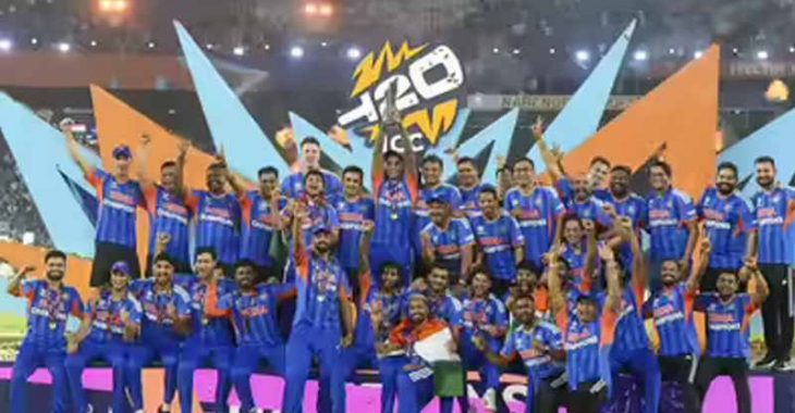 ഐസിസി മെൻസ് ടി20 ലോകകപ്പ് ഫൈനലിൽ ന്യൂസിലൻഡിനെ 96 റൺസിന് തകർത്തു ഇന്ത്യ മൂന്നാം തവണയും കിരീടം സ്വന്തമാക്കി. അഹമ്മദാബാദിലെ നരേന്ദ്ര മോദി സ്റ്റേഡിയം വേദിയായ മത്സരത്തിൽ ടോസ് നഷ്ടപ്പെട്ട് ആദ്യം ബാറ്റ് ചെയ്ത ഇന്ത്യ 5 വിക്കറ്റ് നഷ്ടത്തിൽ 255 റൺസ് നേടി. 46 പന്തിൽ 89 റൺസ് നേടിയ സഞ്ജു സാംസൺ ആണ് ഇന്ത്യയെ വലിയ സ്കോറിലേക്ക് നയിച്ചത്. അഞ്ച് ഫോറും എട്ട് സിക്‌സറും അടങ്ങിയ അതിവേഗ ഇന്നിങ്സായിരുന്നു ഇത്. കൂടാതെ അഭിഷേക് ശർമ്മ 21 പന്തിൽ 52 റൺസും ഇഷാൻ കിഷൻ 25 പന്തിൽ 54 റൺസും നേടി മികച്ച പിന്തുണ നൽകി. ശക്തമായ ബാറ്റിംഗ് പ്രകടനമാണ് ഇന്ത്യയ്ക്ക് വലിയ ലക്ഷ്യം ഉയർത്താൻ സഹായിച്ചത്.