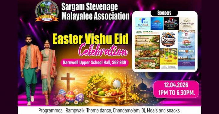പുതിയ കമ്മിറ്റിയുടെ നേതൃത്വത്തിൽ  ഈസ്റ്റർ-വിഷു-ഈദ് ആഘോഷം പ്രൗഢവും, വിപുലമായും സംഘടിപ്പിക്കും. റാമ്പ് വാക്, ഫെസ്റ്റിവൽ തീം സ്കിറ്റ്സ്, ഡിജെ, ഗ്രാൻഡ് ഈസ്റ്റർ ഡിന്നർ, ശിങ്കാരി മേളം കൂടാതെ കലയുടെ വർണ്ണ വസന്തം വിടരുന്ന സംഗീത-നൃത്ത-നടന വിരുന്നും  ആസ്വദിക്കാം ഏപ്രിൽ 12 ന് ഞായറാഴ്ച്ച സംഘടിപ്പിക്കുന്ന  ഈസ്റ്റർ , വിഷു ആഘോഷത്തിന്  സ്റ്റീവനേജ് ബാൺവെൽ അപ്പർ സ്‌കൂൾ ഓഡിറ്റോറിയം വേദിയാവും.