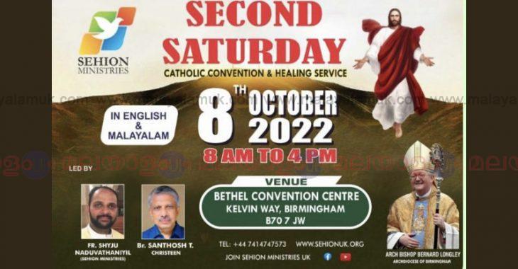 ഒക്ടോബർ മാസ രണ്ടാം ശനിയാഴ്ച്ച കൺവെൻഷൻ 8 ന് . തലമുറകളുടെ ബാല്യ കൗമാര, യൗവ്വനങ്ങളെ യേശുവിലക്ക് നയിക്കുന്ന ക്രിസ്റ്റീൻ മിനിസ്ട്രിയുടെ നേതൃത്വം ബ്രദർ സന്തോഷ്. ടി പങ്കെടുക്കും.. സെഹിയോൻ യുകെയുടെ ആത്മീയ പിതാവ് റവ ഫാ.ഷൈജു നട്ടുവത്താനിയിൽ നയിക്കുന്ന കൺവെൻഷനിൽ ബർമിങ്ഹാം അതിരൂപത ആര്ച്ച് ബിഷപ്പ്. ബർണാഡ് ലോങ്ലി മുഖ്യ കാർമ്മികൻ . 5 വയസ്സുമുതലുള്ള കുട്ടികൾക്ക് ക്ളാസ്സ് അടിസ്ഥാനത്തിൽ പ്രത്യേക ശുശ്രൂഷ . കുമ്പസാരത്തിനും സ്പിരിച്ച്വൽ ഷെയറിങിനും സൗകര്യം .