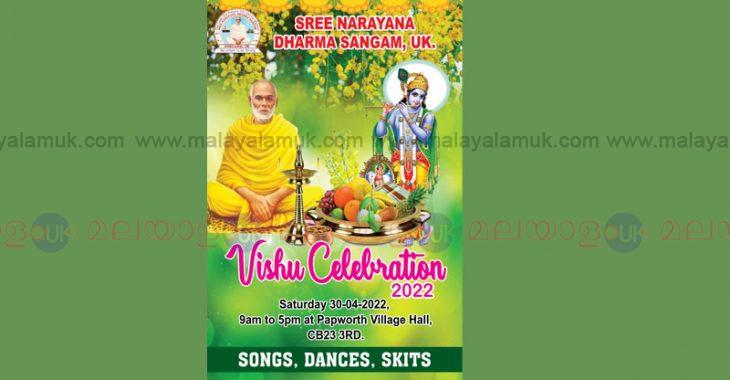 യു കെ മലയാളികളുടെയിടയിൽ പ്രമുഖ സ്ഥാനം നേടിയ ശ്രീ നാരായണ ധർമ്മ സംഘം ഈ വർഷത്തെ വിഷു ആഘോഷം ഏപ്രിൽ മാസം മുപ്പതാം തീയതി ശനിയാഴ്ച 9 മണി മുതൽ 5 മണി വരെ കംബ്രിഡ്ജിലെ പാപ്പ് വർത്ത് വില്ലേജ് ഹാളിൽ വച്ച് നടത്തുവാൻ തീരുമാനിച്ചിരിക്കുന്നു .