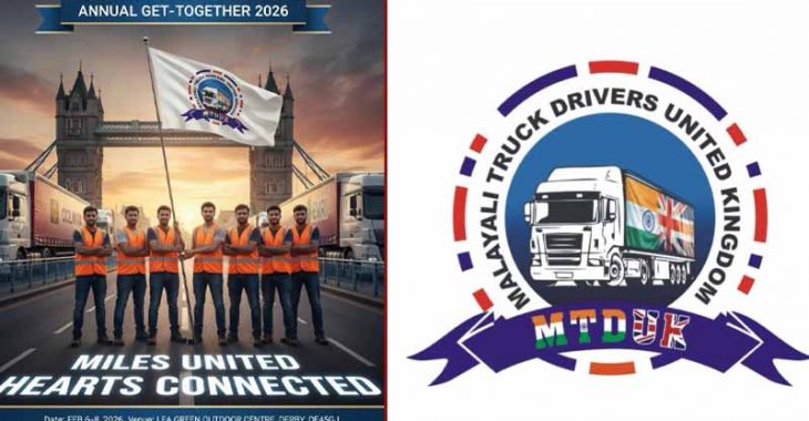 യുകെയുടെ വടക്ക് ജോൺ ഓ ഗ്രോട്സ് മുതൽ തെക്ക് ലാൻഡസ് എൻട് വരെയുള്ള മലയാളി ട്രക്ക് ഡ്രൈവർമാരുടെ കൂട്ടായ്മയുടെ 4-ാമത് വാർഷിക സമ്മേളനം ഫെബ്രുവരി 6, 7, 8 തീയതികളിൽ ഡർബിഷെയറിലെ ലെ MATLOCK Lea Green Outdoorsil വെച്ച് നടത്തപ്പെടുകയാണന്ന് കൂട്ടായ്മയ്ക്ക് നേതൃത്വം നല്കുന്ന അനിൽ അബ്രാഹം, റോയ് തോമസ്, ജെയ്ൻ ജോസഫ്, അമൽ പയസ്,