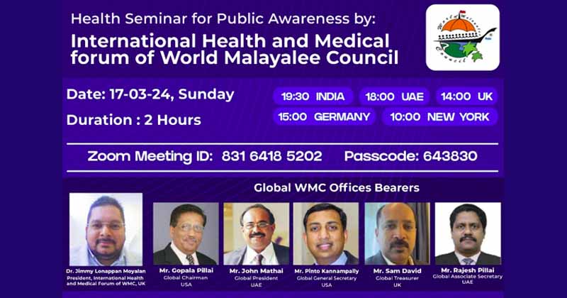 ലോകത്തിന്റെ വിവിധഭാഗങ്ങളിലായി കഴിയുന്ന മലയാളികള്ക്കായി എല്ലാ മാസത്തിന്റേയും അവസാനത്തെ വെള്ളിയാഴ്ച വേള്ഡ് മലയാളി കൗണ്സില് യൂറോപ്പ് റീജിയന് ഒരുക്കുന്ന ഈ കലാസാംസ്കാരികവേദിയുടെ അടുത്ത സമ്മേളനം സെപ്തംബര് 29-ാം തീയതി ഉച്ചകഴിഞ്ഞ് 3 മണിക്ക് (UK time) വെര്ച്ചല് പ്ളാറ്റ്ഫോമിലൂടെ നടക്കുന്നതാണ്. ഈ കലാസാംസ്കാരിക വേദിയില് എല്ലാ പ്രവാസി മലയാളികള്ക്കും അവര് താമസിക്കുന്ന രാജ്യങ്ങളില് നിന്നുകൊണ്ടു തന്നെ ഇതില് പങ്കെടുക്കുവാനും, അവരുടെ കലാസൃഷ്ടികള് അവതരിപ്പിക്കുവാനും (കവിതകള്, ഗാനങ്ങള് തുടങ്ങിയവ ആലപിക്കുവാനും) ആശയവിനിമയങ്ങള് നടത്തുവാനും അവസരം ഉണ്ടായിരിക്കുന്നതാണ്.
