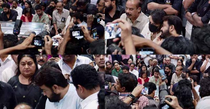 കൊച്ചി: അന്തരിച്ച നടനും സംവിധായകനുമായ ശ്രീനിവാസന് ആദരാഞ്ജലികളർപ്പിച്ച് മലയാള സിനിമാലോകം ഒന്നടങ്കം ദുഃഖത്തിലായി. ടൗൺഹാളിൽ പൊതുദർശനത്തിനായി വെച്ച മൃതദേഹത്തിന് മമ്മൂട്ടി, മോഹൻലാൽ, ദിലീപ്, സത്യൻ അന്തിക്കാട്, ബേസിൽ ജോസഫ്, ഉണ്ണിമുകുന്ദൻ തുടങ്ങിയവരും മുഖ്യമന്ത്രി പിണറായി വിജയനും ഉൾപ്പെടെ നിരവധി പേർ ആദരാഞ്ജലി അർപ്പിച്ചു. ഉച്ചയോടെ കണ്ടനാടുള്ള വീട്ടിൽ നിന്ന് ടൗൺഹാളിലെത്തിച്ച മൃതദേഹം പിന്നീട് വീട്ടിലേക്ക് തിരികെ കൊണ്ടുപോയി. സംസ്കാരം നാളെ രാവിലെ പത്തിന് വീട്ടുവളപ്പിൽ പൂർണ ഔദ്യോഗിക ബഹുമതികളോടെ നടക്കും.