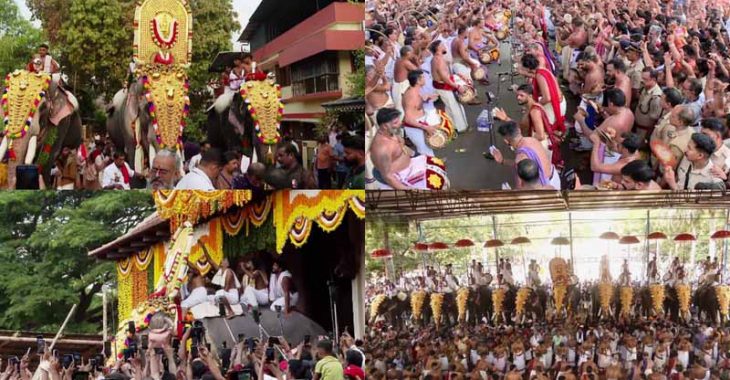 രാവിലെ എട്ടരയോടെ ശ്രീമൂലസ്ഥാനത്ത് മേളം ആരംഭിക്കുമെന്ന് അറിയിക്കപ്പെട്ടു. തുടർന്ന് തിരുവമ്പാടി ഭഗവതിയും നായ്ക്കനാലിൽ നിന്നും ശ്രീമൂലസ്ഥാനത്തേക്ക് കയറുന്നതായിരിക്കും. തിരുവമ്പാടി ചന്ദ്രശേഖരൻ തിടമ്പേറ്റുന്നതായും, ചെറുശ്ശേരി കുട്ടൻ മാരാർ മേളത്തിന് പ്രമാണിയായിരിക്കുമെന്നും അറിയിക്കപ്പെട്ടു. ഇരു ഭഗവതിമാരുടെയും മേളം കലാശിച്ചതിനുശേഷം ഉച്ചയ്ക്ക് 12ഓടെ വടക്കുന്നാഥ സന്നിധിയിൽ എത്തി ഉപചാരം ചൊല്ലി പിരിയുന്നതായിരിക്കും.