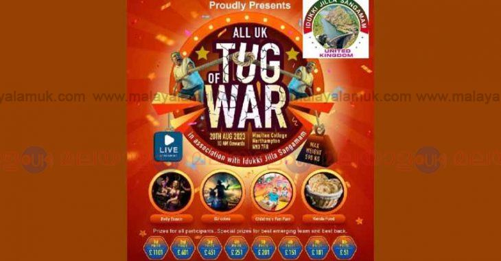 യു കെയിലെ ഏറ്റവും വലിയ സ്വദേശീയ കൂട്ടായമയും, ചാരിറ്റി പ്രവർത്തനങ്ങൾക്ക് മുൻ നിരയിൽ നില്ക്കുന്ന ഇടുക്കി ജില്ലാ സംഗമം യുകെയുടെ നേത്യത്തിൽ പിനാക്കിൾ ഫിനാൻഷ്യൽ സൊല്യൂഷൻസ് ലിമിറ്റഡ് നടത്തുന്ന ഓൾ യുകെ വടം വലി മത്സരത്തിന്റെ എല്ലാ വിധ ഒരുക്കങ്ങളും പൂർത്തിയായി. ഓഗസ്റ്റ് 20ന് നോർത്താബറ്റണിൻ്റെ മണ്ണിൽ നടത്തപ്പെടുന്ന ഈ വടംവലി മൽസരത്തിൽ. യുകെയുടെ വിവിധ ഭാഗങ്ങളില് നിന്നായി കരുത്തിന്റെയും, ഒരുമയുടെയും 19 ത് ടീമുകൾ ഏറ്റ് മുട്ടുന്നൂ, യുകെയിൽ ആദ്യമായിട്ടാണ് 19 ടീമുകൾ ഒരു വടം വലി മൽത്സരത്തിൽ പങ്ക് എടുക്കുന്നത് എന്ന പ്രതേകതയും ഈ ടൂർണമെൻ്റിന് ഉണ്ട്. രജിഷ്ട്രേഷൻ രാവിലെ 8 മണിക്ക് ആരംഭിക്കുന്നതാണ്.