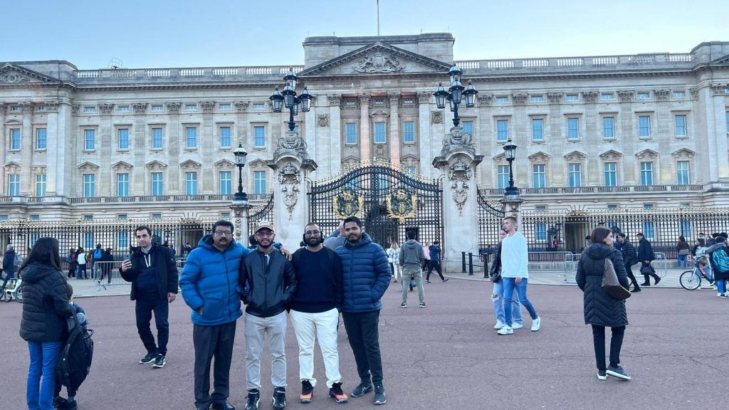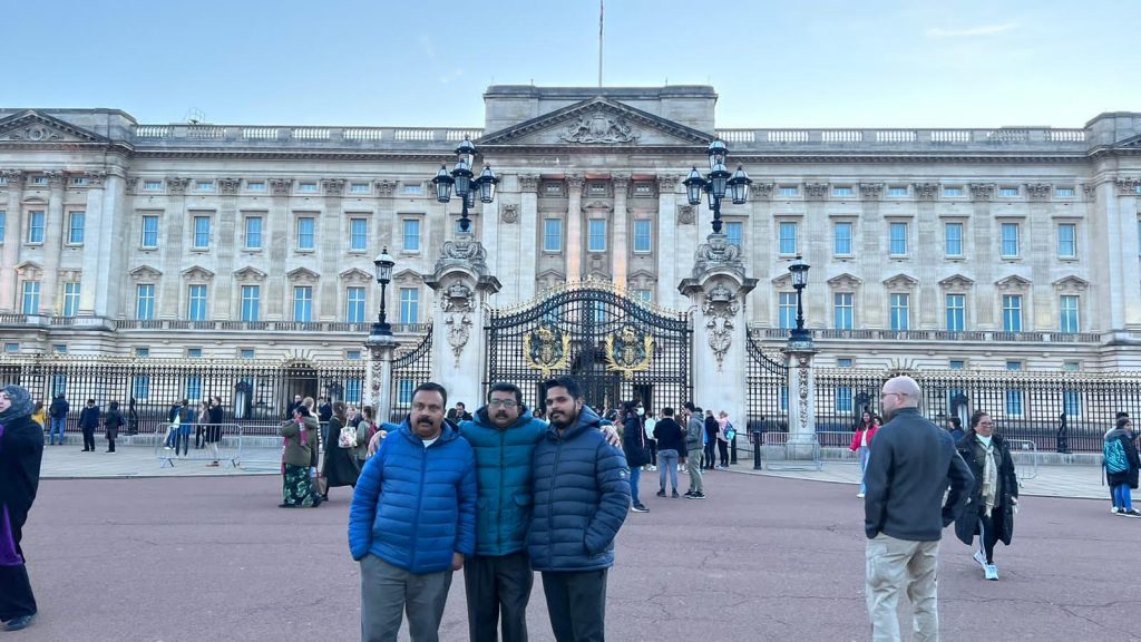 ലണ്ടന്റെ ഹൃദയഭാഗത്ത് അഭിമാനത്തോടെ നിലകൊള്ളുന്ന ബക്കിംഗ്ഹാം കൊട്ടാരം ബ്രിട്ടീഷ് രാജകുടുംബത്തിന്റെ ഔദ്യോഗിക വസതി എന്ന നിലയിൽ ലോകപ്രശസ്തമാണ്. ആ ചരിത്രപ്രസിദ്ധമായ കൊട്ടാരത്തിനു മുൻപിൽ ആണ് ഞങ്ങൾ നിൽക്കുന്നത് എന്ന് വിശ്വസിക്കാൻ സാധിക്കുന്നില്ല.