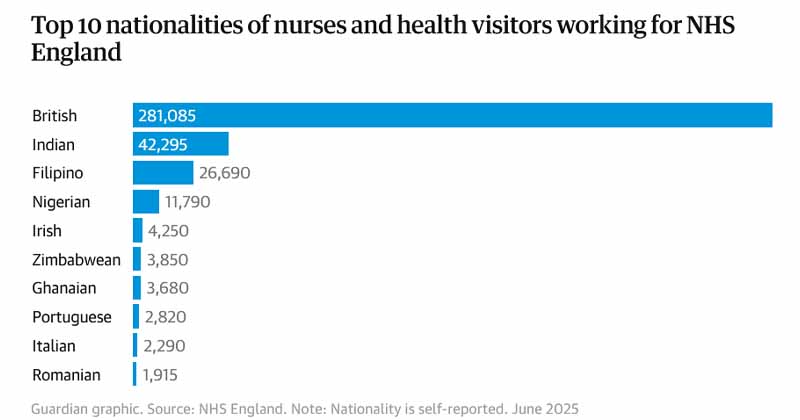 ബ്രിട്ടൻ പുതിയ കുടിയേറ്റ നയങ്ങൾ കർശനമാക്കിയതിനെ തുടർന്ന് 50,000 വരെ വിദേശ നഴ്സുമാർ രാജ്യം വിടാൻ ആലോചിക്കുന്നതായുള്ള റിപ്പോർട്ടുകൾ പുറത്തുവന്നു. താമസാനുമതി ലഭിക്കാനുള്ള കാലാവധി 5 വർഷത്തിൽ നിന്ന് 10 വർഷമാക്കുന്നതും ഭാഷാ–യോഗ്യതാ മാനദണ്ഡങ്ങൾ കടുപ്പിക്കുന്നതുമായ നടപടികൾ ആരോഗ്യ മേഖലയിൽ വലിയ പ്രതിസന്ധി സൃഷ്ടിക്കുമെന്ന് വിദഗ്ധർ പറയുന്നു. ഇതിനകം തന്നെ ജീവനക്കാരുടെ കുറവ് കൊണ്ട് നട്ടം തിരിയുന്ന എൻഎച്ച്എസിനെ ഇത് കൂടുതൽ ബുദ്ധിമുട്ടിലാക്കുമെന്നാണ് ആശങ്ക.