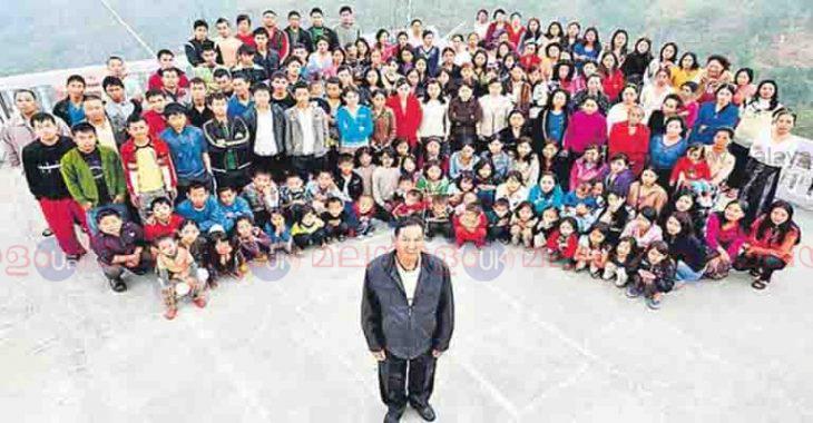 ലോകത്തിലെ ഏറ്റവും വലിയ കുടുംബത്തിന്റെ നാഥൻ സിയോൺ ചന(76) അന്തരിച്ചു. 39 ഭാര്യമാരെയും 94 മക്കളുമടങ്ങുന്ന വിശാലകുടുംബമാണ് മിസോറാമുകാരനായ സിയോണിന്റേത്. 33 പേരക്കുട്ടികളും സിയോണിനുണ്ട്. 100 മുറികളുള്ള നാലുനില വീട്ടിലായിരുന്നു എല്ലാവരും കഴിഞ്ഞിരുന്നത്.