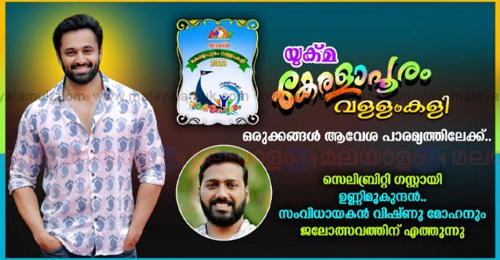 യുക്മ കേരളാപൂരം വള്ളംകളി – 2022 ന് ആവേശം പകരാൻ മലയാളത്തിന്റെ പ്രിയ നടൻ ഉണ്ണി മുകുന്ദനും യുവ ചലച്ചിത്ര സംവിധായകൻ, മേപ്പടിയാൻ ഫെയിം വിഷ്ണു മോഹനും എത്തുന്നു. മലയാളം, തമിഴ്, തെലുങ്ക്‌ ചിത്രങ്ങളിലെ നിറ സാന്നിദ്ധ്യമായ ഉണ്ണി മുകുന്ദൻ യുവ നിരയിലെ ശ്രദ്ധേയനായ നടനാണ്. കേരളീയ യുവതയുടെ ആവേശമായ ഉണ്ണി മുകുന്ദൻ നല്ലൊരു ഗായകനും ചലച്ചിത്ര നിർമ്മാതാവും കൂടിയാണ്.